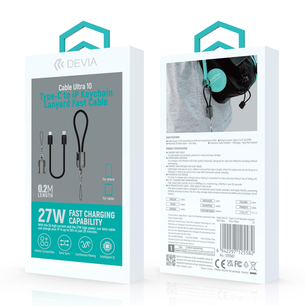 Gadgets Devia Llavero Cable Retráctil Tipo-C a Lightning